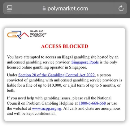 Polymarket, bloqué à Singapour pour violation du Gambling Control Act