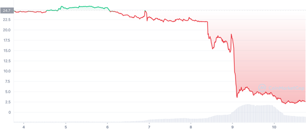 The token fell by a total of 90% over the past week and is on track to head toward zero.