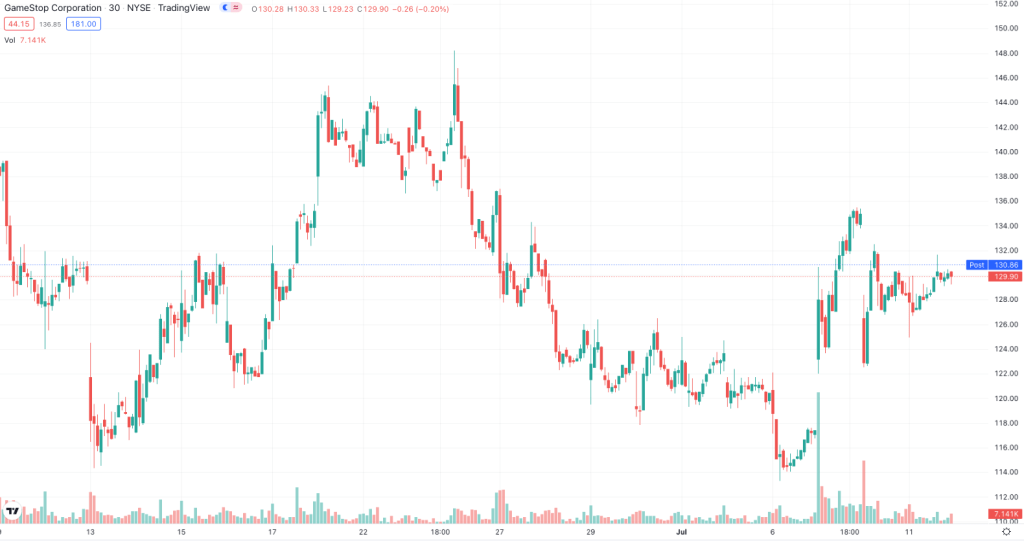 GameStop (GME) has become a flagship 'meme stock' with a volatile nature relative to it's peers. | Source: NYSE: GME on TradingView.com