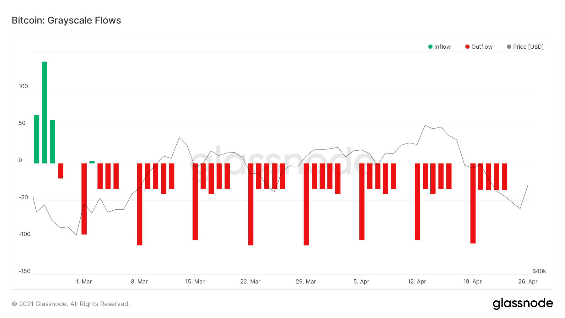 Interestingly enough, when Grayscale’s premium began to collapse in late February, the fund continued to decrease its holdings in what seems to be scheduled selling.