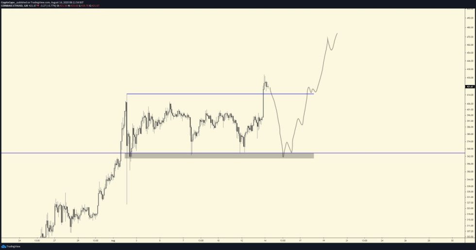 “ETH / USD: Weekly close looking completely nuts right now, I guess $475 would be the next major level of resistance. Probably expect a pullback to around $400 level before the end of the month to confirm this level as support but overall this is looking more bullish than ever.”