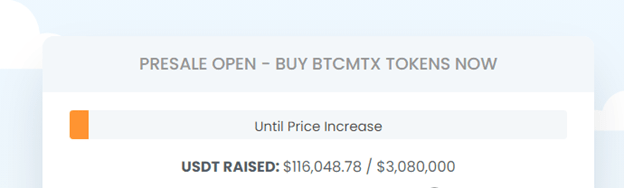 Bitcoin Minetrix, a tokenized cloud mining platform, enables crypto investors to mine Bitcoin seamlessly through a unique Stake-to-Mine model. The platform recently launched its ICO, inviting early entrants to acquire the $BTCMTX token for a starting price of $0.011. The presale will be conducted in 10 phases, with an incremental token price increase after each round.