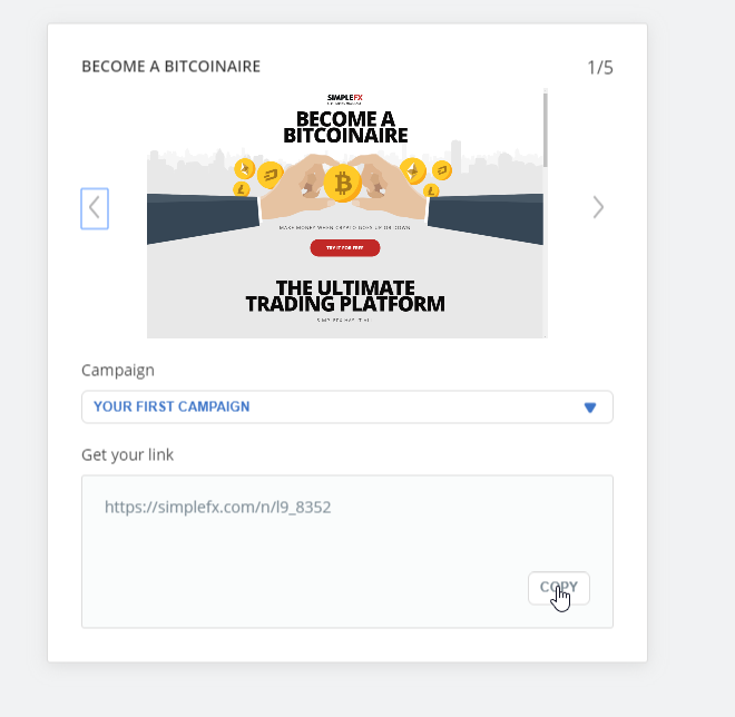 2. With SimpleFX Affiliate Marketing Program by Unilink.io, you can choose from three different distribution channels: display ad banners, simple links or complete landing pages.
