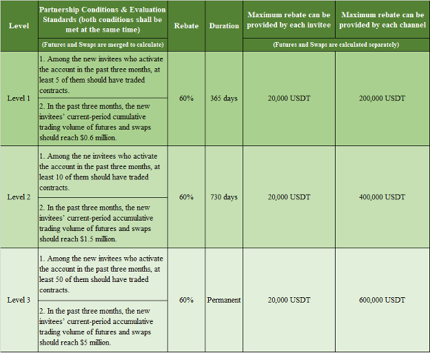 At the moment applicants receive approval, they can begin leveraging the transaction fee rebate they get from their invitees. The contract rebate is currently applied to both coin-margined futures and coin-margined swaps offered by the derivatives platform.