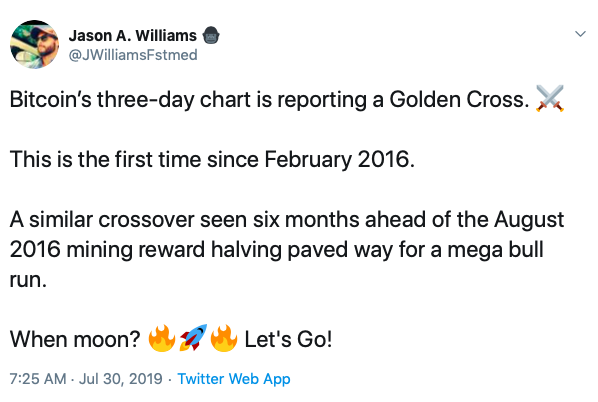 With that said, this should not detract from the significance of the golden cross as the one from February 2016 saw Bitcoin rally all the way to $20,000. At the time of writing, BTC trades for $9,650 and analysts seem to agree that the digital asset could make a run at $10,000 over the next 24-hours. At the same time, a close above $11,200 would be needed to restore the bullish uptrend.