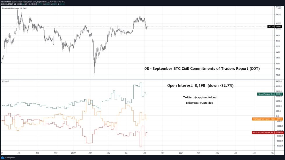 “08 – September CME BTC Commitments of Traders Report (COT). Open Interest: 8,198 (down -22.7%),” he explained.