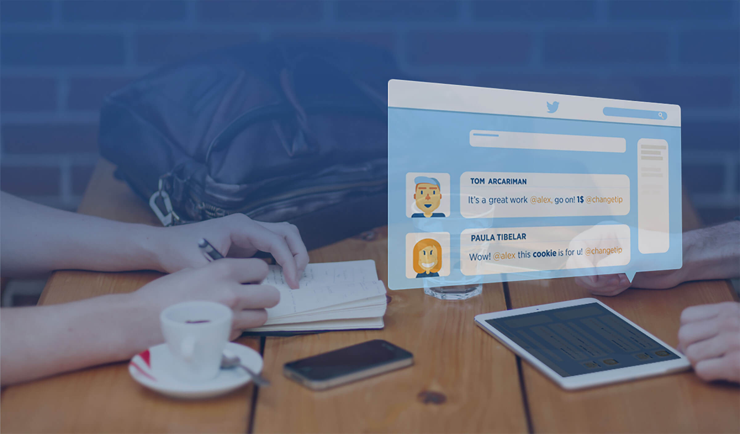 ChangeTip enables micropayments over social media, as a platform built on top of Bitcoin. We give users a new way to show appreciation over the internet :)