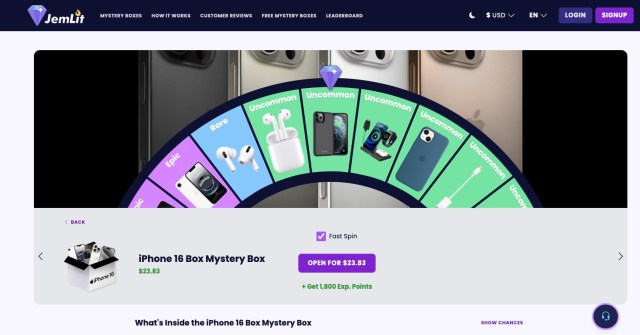 在这个赛道中,JemLit 是少数具备完整合法认证机制平台。其「iPhone Mania」盲盒特别为科技爱好者打造,主打高比例 Apple 产品奖池,不仅中 iPhone 16 机会高,用户若对抽到奖品不满意,还可以使用平台积分「Jems」兑换其他盲盒或奖品,使得每一次参与都有策略空间与弹性保障。
