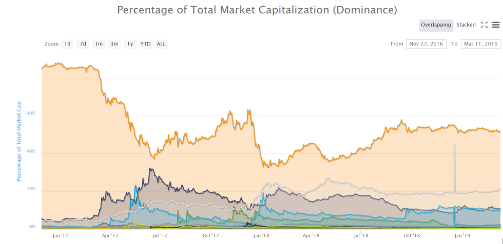 Don’t get me wrong, BTC remains the most stable of the cryptos and the Bitcoin dominance index is holding well above 50%, despite some of the surges in the smaller coins.
