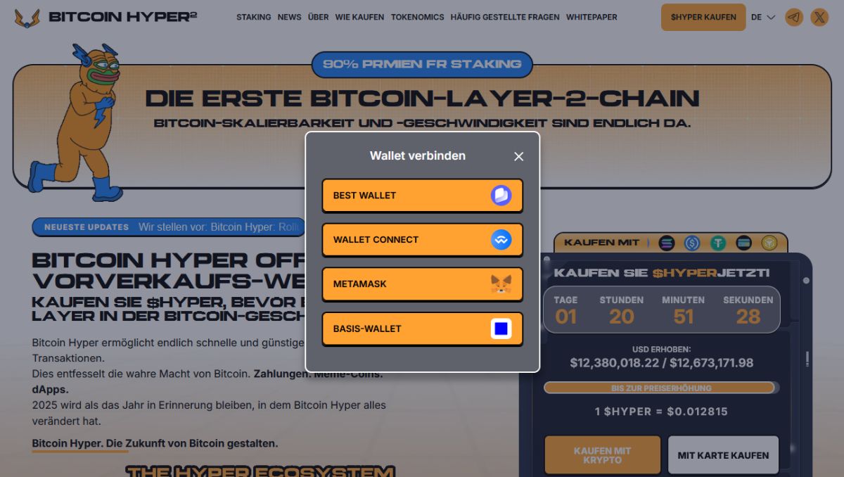 Auf bitcoinhyper.com beginnt alles. Falls Sie noch keine Wallet besitzen, klicken Sie auf „Kaufen mit Krypto“ – dort wird Ihnen unter anderem Best Wallet empfohlen. Die Einrichtung? Ein paar Klicks, keine Hürde, indem Sie einfach den QR-Code per Smartphone oder Tablet einscannen. Sobald alles steht, ist Ihre digitale Brieftasche bereit für den ersten Einsatz.