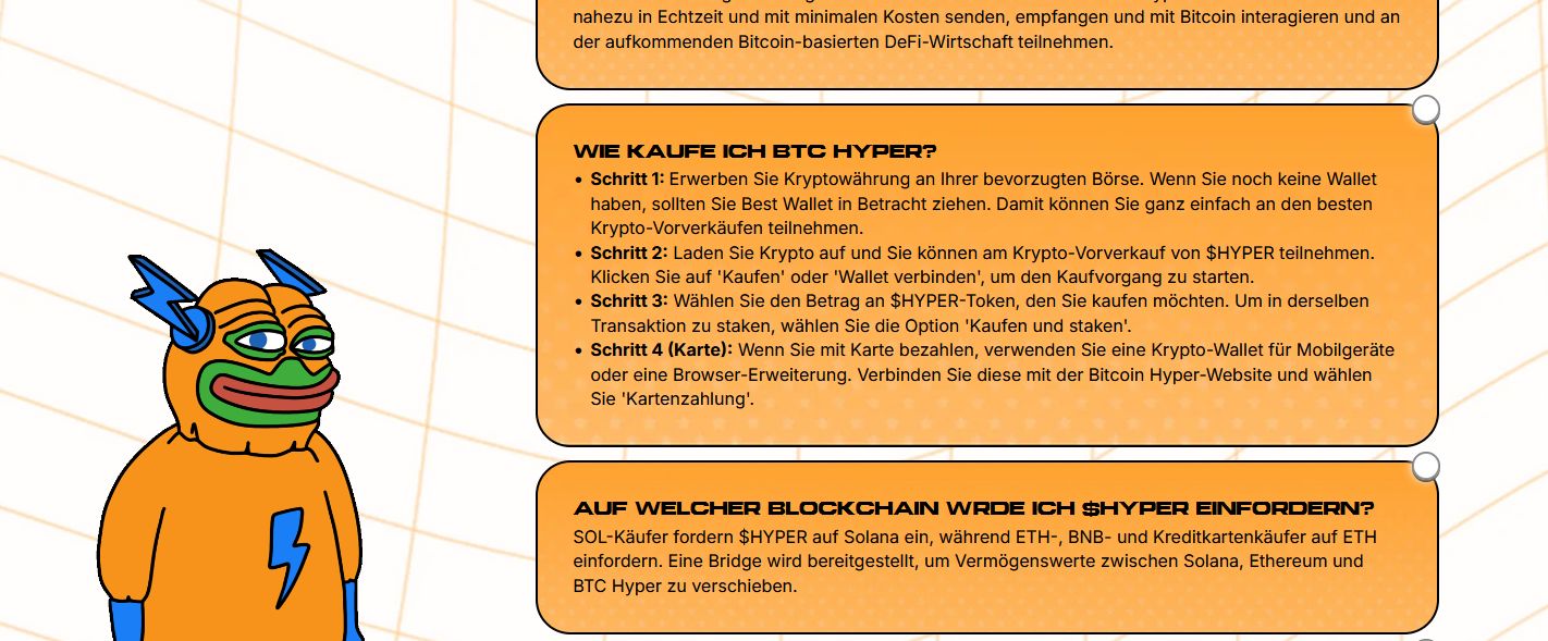 Zurück zur Presale-Seite von Bitcoin Hyper. Dort klicken Sie erneut auf „Kaufen mit Krypto” oder „Mit Karte kaufen“. Anschließend verbinden Sie Ihre Wallet mit der Plattform – ein paar Sekunden und Sie sind im System. Andere Wallets außer Best Wallet funktionieren meist auch, aber prüfen Sie die Kompatibilität.