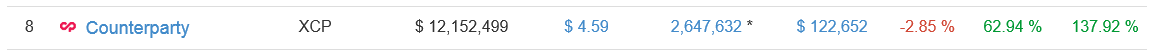 Counterparty also took several people by surprise, in fact growing by 130% over the last 7 days.