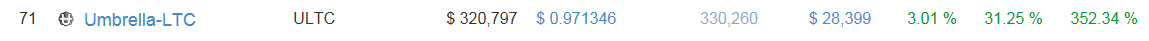 An Altcoin that has received a lot of buzz and market movement is Umbrella Holdings. Umbrella Holdings comes in two variants currently, umbrella-btc and umbrella-ltc. The respective coins are designed to insure their designated cryptocurrencys against loss and to be a hedge for these coins. An interesting coin, it uses auxPOW not for securing its own network, but rather making a “basket” to insure the coin.