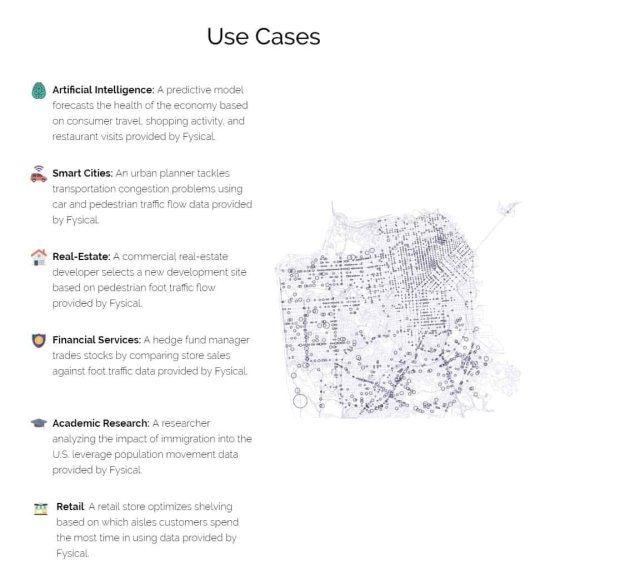With Fysical’s blockchain-based location data market, a new world of possibilities is opened for data analysis and machine learning. New prediction models for consumer behavior and retail spending, pedestrian traffic flow tracking applications, and population migration are just a few of the ways that location-based data–when provided in an accurate and transparent fashion–can be utilized successfully.