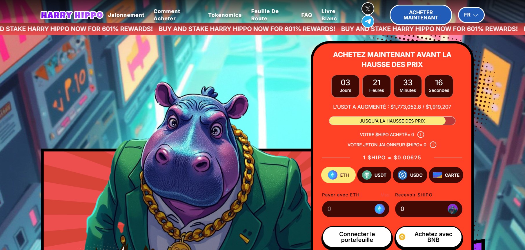 Harry Hippo est une prévente crypto qui propose aux fans de jeu blockchain un tout nouveau concept. Contrairement aux memecoins habituels qui s’inspirent des chats, des chiens ou du célèbre grenouille Pepe, Harry Hippo se distingue en s’inspirant des célèbres hippopotames géants de l’Haciendas Napolis en Colombie.