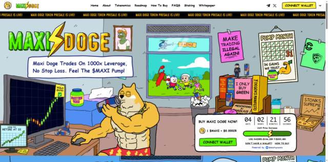 2. Maxi Doge – Token meme care îmbină cultura „gym bro” cu cea a tradingului cu levier
