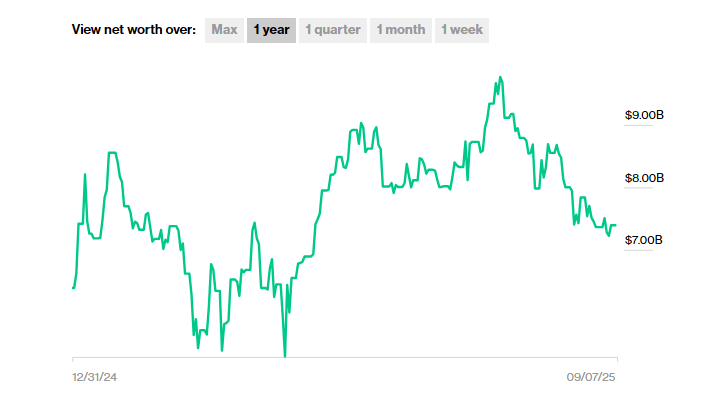 Reports have disclosed that his wealth rose by about $1 billion since the start of 2025, a gain of nearly 16% year-to-date.