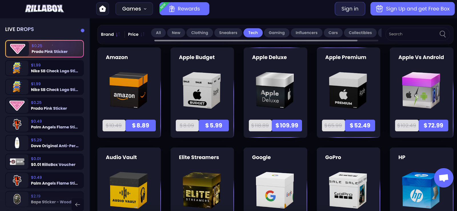 RillaBox предлага предимно технологии и подобни артикули като Amazon мистериозна кутия, без да изисква големи суми. Ако искате с малък залог да спечелите интересни продукти, може да ги намерите тук. Популярна е например Amazon мистериозната кутия, в която могат да се намерят 75-инчов телевизор и други скъпи джаджи. Apple мистериозната кутия струва малко под 6 щатски долара и понякога дори предлага iPhone 16 Pro Max.
