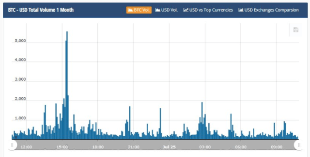 The next is South Korea, who are some of the biggest crypto traders in the world. The peak here is only at 273 BTC but the correlation between the volumes and the price movement is very clear.