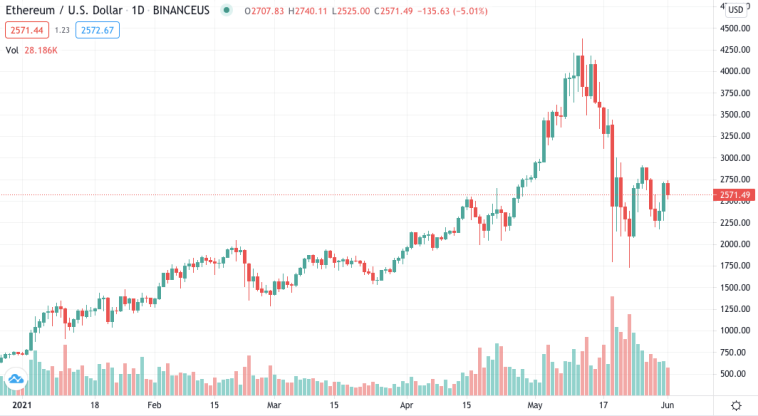 Candy is set to be powered by Ethereum, a popular blockchain for NFTs as proof-of-stake approaches. | Source: ETH-USD on TradingView.com