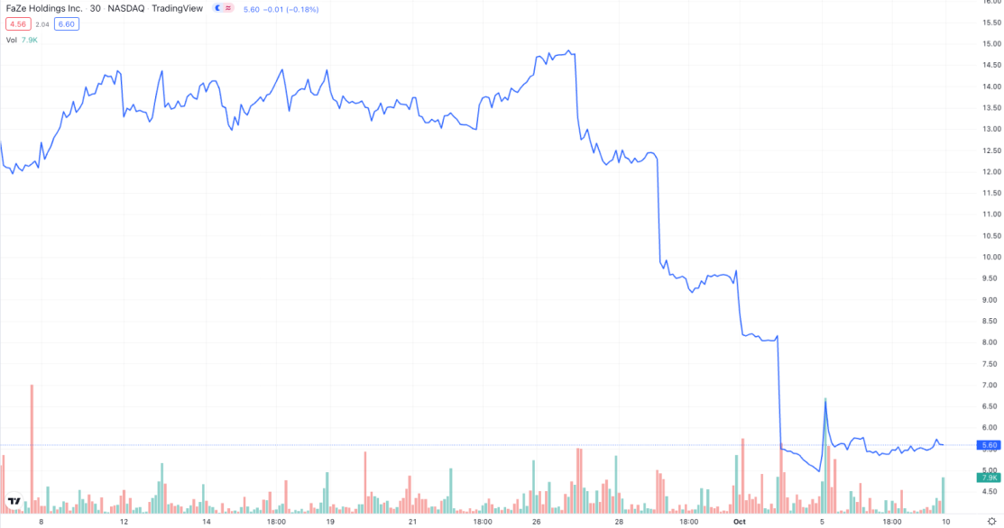 FaZe Clan (NASDAQ: FAZE) went public this year, and partnered up with MoonPay last year. | Source: NASDAQ: FAZE on TradingView.com