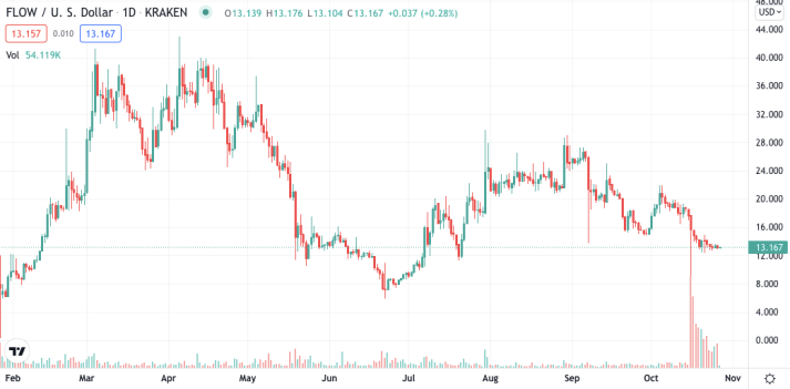 Flow's token has displayed a milder-than-expected performance this year, despite Dapper Labs' newsworthy partnerships that have come to the surface. | Source: FLOW-USD on TradingView.com