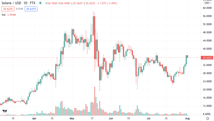Solana has partnered with Chicago, IL festival Lollapalooza. | Source: SOL-USD on TradingView.com