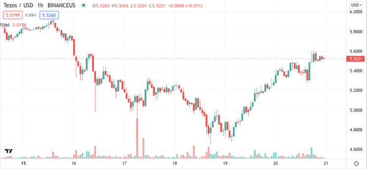 Tezos NFTs looked like they might be in trouble after conflict led to the shutdown of the HEN marketplace. However, community members came together to revive the platform, and are working towards establishing it as a DAO moving forward. | Source: XTZ-USD on TradingView.com