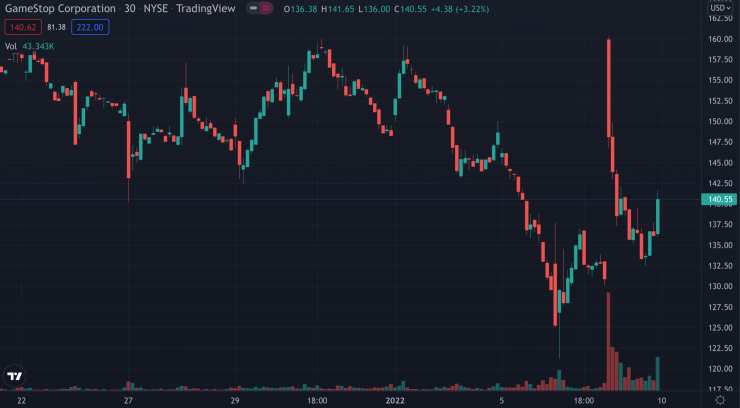GameStop, host to one of the craziest stock market stories last year, has seen immense volatility this past week after announcing their plans to release an NFT marketplace later this year. | Source: NYSE: GME on TradingView.com