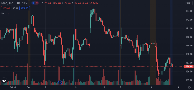 Nike has been enduring it's fair share of a broader market slide in the NYSE recently. Will the company's new endeavors in blockchain technology help spark a turnaround? | Source: NYSE: NIKE on TradingView.com