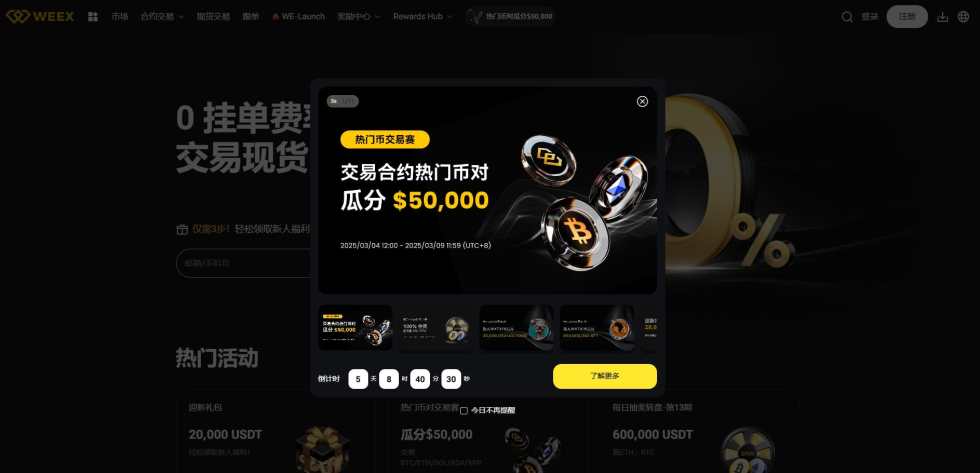 WEEX 支援超過580種加密貨幣,提供廣泛的數位資產選擇。除了交易功能外,WEEX 還提供具有吸引力的聯盟和推薦計劃,佣金最高可達50%。