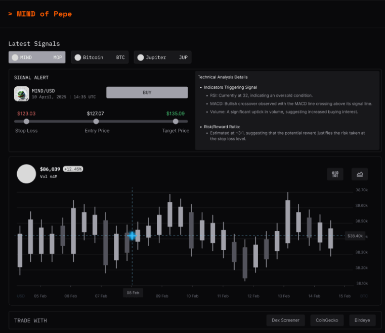 Това не е просто поредния AI, който чете данни – той действа. Благодарение на автономен интелект, може да взаимодейства директно със смарт договори и децентрализирани приложения (dApps), търсейки печеливши възможности за притежателите на $MIND.