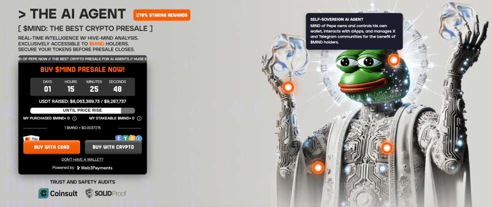 Със събрани над $8 милиона в предпродажба, проектът вече има активна и ангажирана общност. За разлика от PEPE, $MIND предлага реална функционалност още от първия ден.