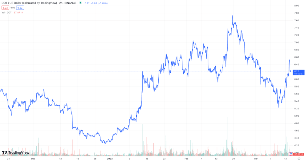 Polkadot (DOT) will be working with Beatport to change the game in electronic music. | Source: DOT:USD on TradingView.com