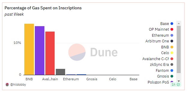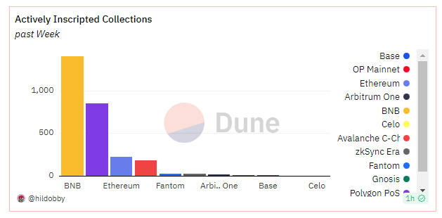 The primary feature of this inscription trend is Polygon’s pivotal function as an Ethereum layer 2 scaling solution. It is clear from the Dune Analytics dashboard that it has become the hub for inscription activity in the EVM ecosystem.