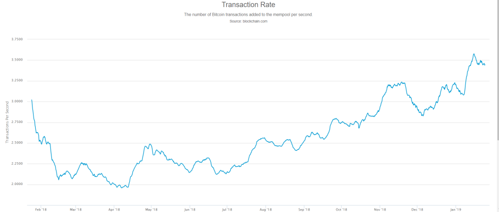 The transaction rate on the bitcoin blockchain is now at its highest level in a year, which is kind of cool. This is a good indicator that shows usage of bitcoin is growing despite the bear market.