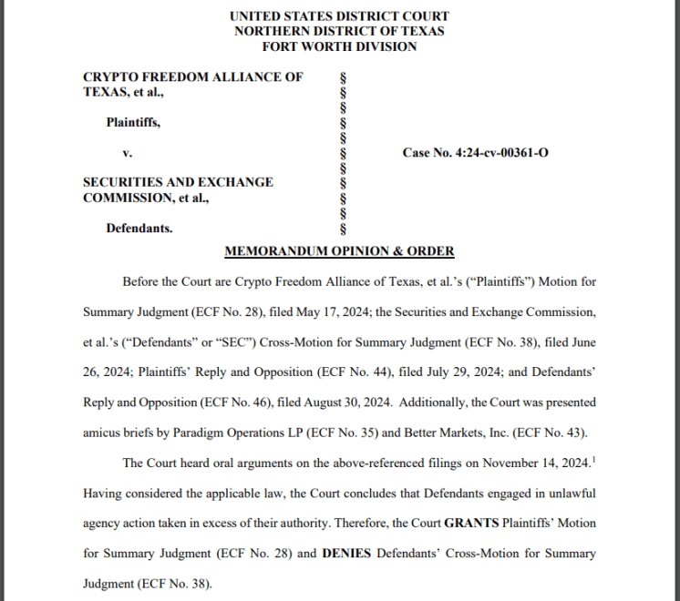 DEALER RULE STRUCK DOWN! SEC exceeded its statutory authority. HUGE win for the entire industry @BlockchainAssn and @CryptoFreedomTX !!! pic.twitter.com/Zv1Mhv1uwl