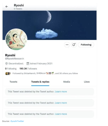 Around this time in 2021, Ryoshi posted his latest Twitter comment, and his account has not issued a statement since.