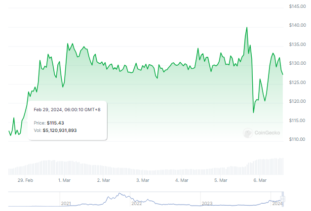 Just last week, the price catapulted to a dizzying $142, marking a year-to-date gain of over 40%. Yet, SOL encounters resistance above $140, prompting a partial retracement to the current $135 mark.