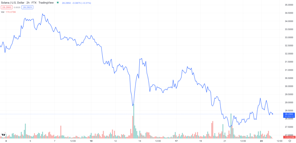 Solana (SOL) has seen hits to its defi and NFT push, but still stands strong. | Source: SOL-USD on TradingView.com