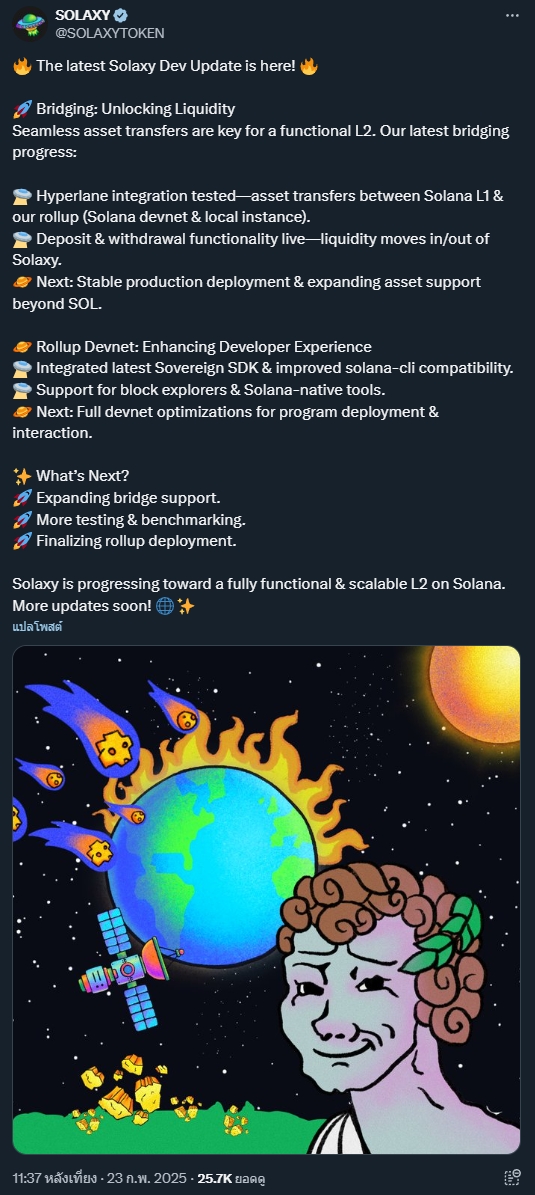 เป็นหนึ่งในผู้ใช้งานรายแรกของ Layer-2 ตัวแรกของ Solana: Solaxy