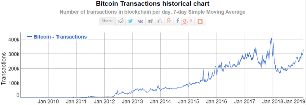 By looking at this graph we can easily see that the number of transactions being processed in bitcoin has been growing increasingly during the bear market and is now reaching levels that have previously been seen only during the 2017 bull run.