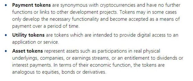 As a refresher, the Swiss classify cryptocurrencies in three different categories: