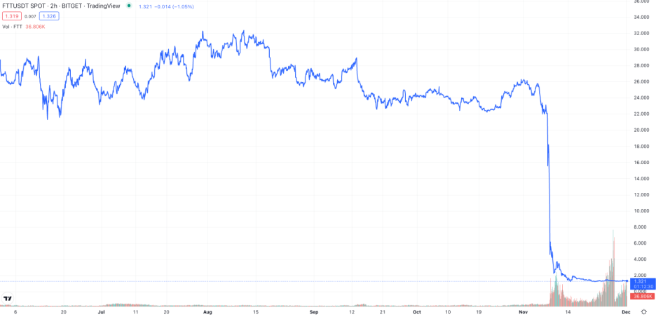 FTX's platform token (FTT) went under as FTX was exposed for excessive, high-risk leverage with customer funds. | Source: FTT:USDT on TradingView.com