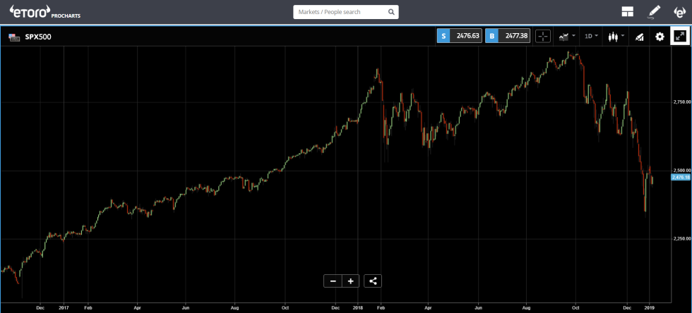 Stocks remain under pressure but are seeing a bit of a rebound today. Going into the 14th day of the partial US government shutdown, stocks are at a critical juncture.