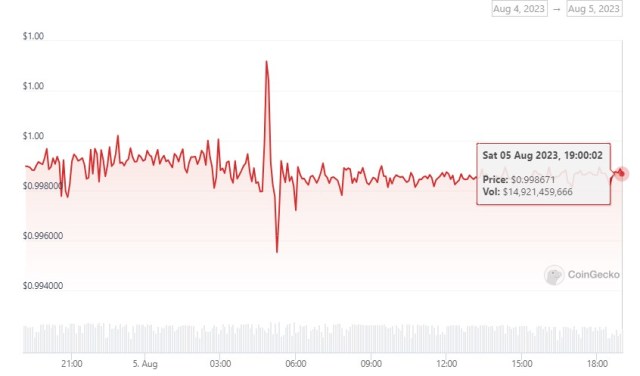 USDT peg to the US dollar. Source: CoinGecko