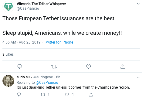 Recent price moves have vaulted USDT past Binance and into sixth place on the world’s list of most valuable cryptocurrencies. However, it appears some traders have failed to view the move as having a significant level of legitimacy. As Tether continues to influence broader market sentiment, commentator @CasPiancy tweeted:
