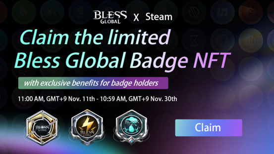 All Steam users can claim an exclusive Bless Global Badge, which is not for sale. The rewards will vary based on the account registration date. Users who have held their Steam accounts for less than one year will receive a Storm-Eye Badge. Those who have had the accounts for one to three years will receive a Thunderstorm Badge and a pet NFT. As for players with accounts older than three years, a Rainstorm Badge, and a mount NFT will be airdropped. These badges and NFTs will bring advanced benefits in the future, including VIP PASS airdrops, in-game NFTs and items, privileges to join exclusive events, and token airdrops. Please follow the Bless Global community for future updates.
