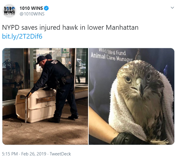 As the Fed Chair Jerome Powell was giving his testimony to Congress yesterday some pictures emerged on Twitter of an injured hawk that had been valiantly rescued by the New York Police Department.