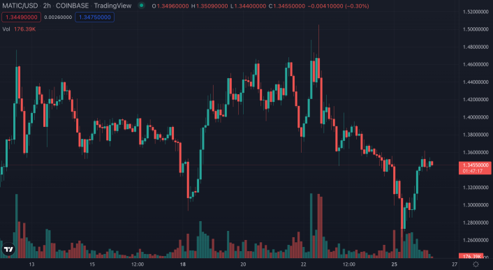 Polygon is host to the NFL's NFT platform, which is breaking out a new collection this week in celebration of the 2022 NFL Draft. | Source: MATIC-USD on TradingView.com